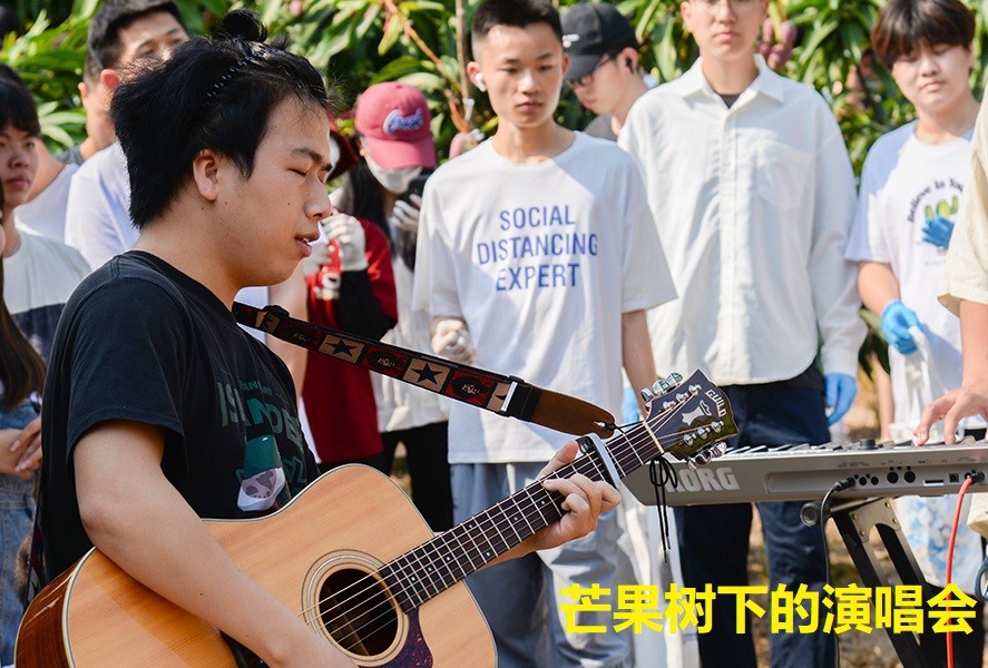 一场别具特色的芒果树下音乐会拉开了学院芒果采摘节的帷幕。理工学院特邀永利集团芒果乐队来到芒果园,在芒果树下为现场师生演唱多首经典校园民谣。硕果满枝的芒果园里歌声飞扬,迅速点燃现场热情。